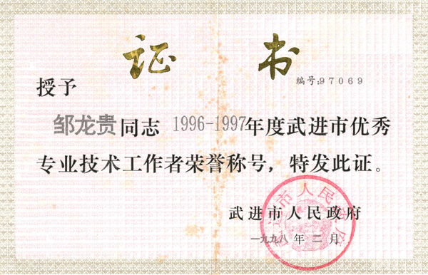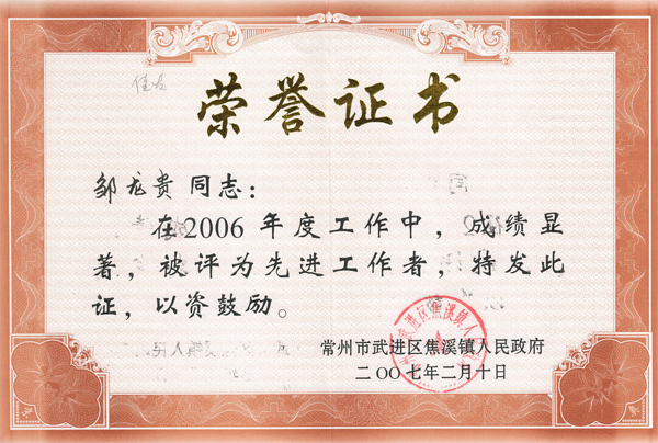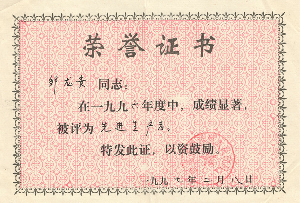 獲獎(jiǎng)證書
